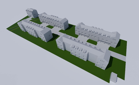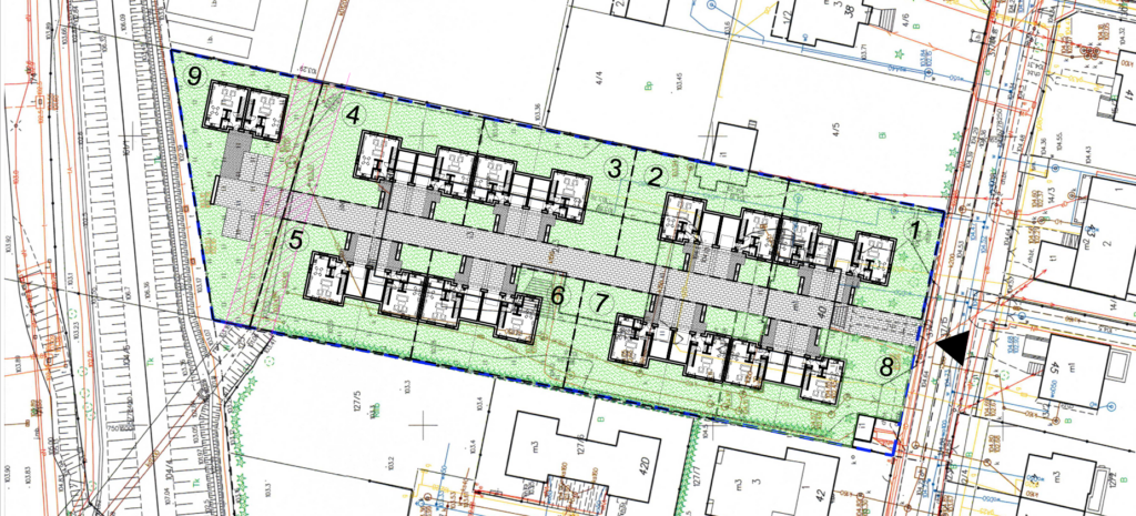 Zgodnie z aktualnymi analizami architektonicznymi, na działce istnieje możliwość realizacji osiedla w zabudowie bliźniaczej lub szeregowej o łącznej powierzchni użytkowej domów wynoszącej od ok. 2 300 do